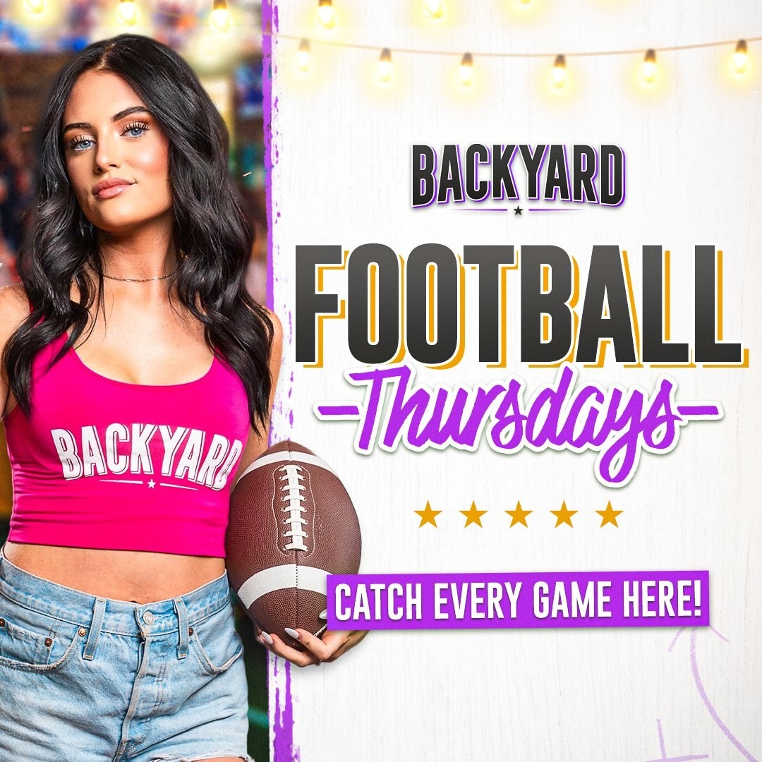 Join us at Backyard Dallas every Thursday night for live Thursday Night Football, great food, drinks, and big screens to catch every play. Bring your friends and enjoy the game!